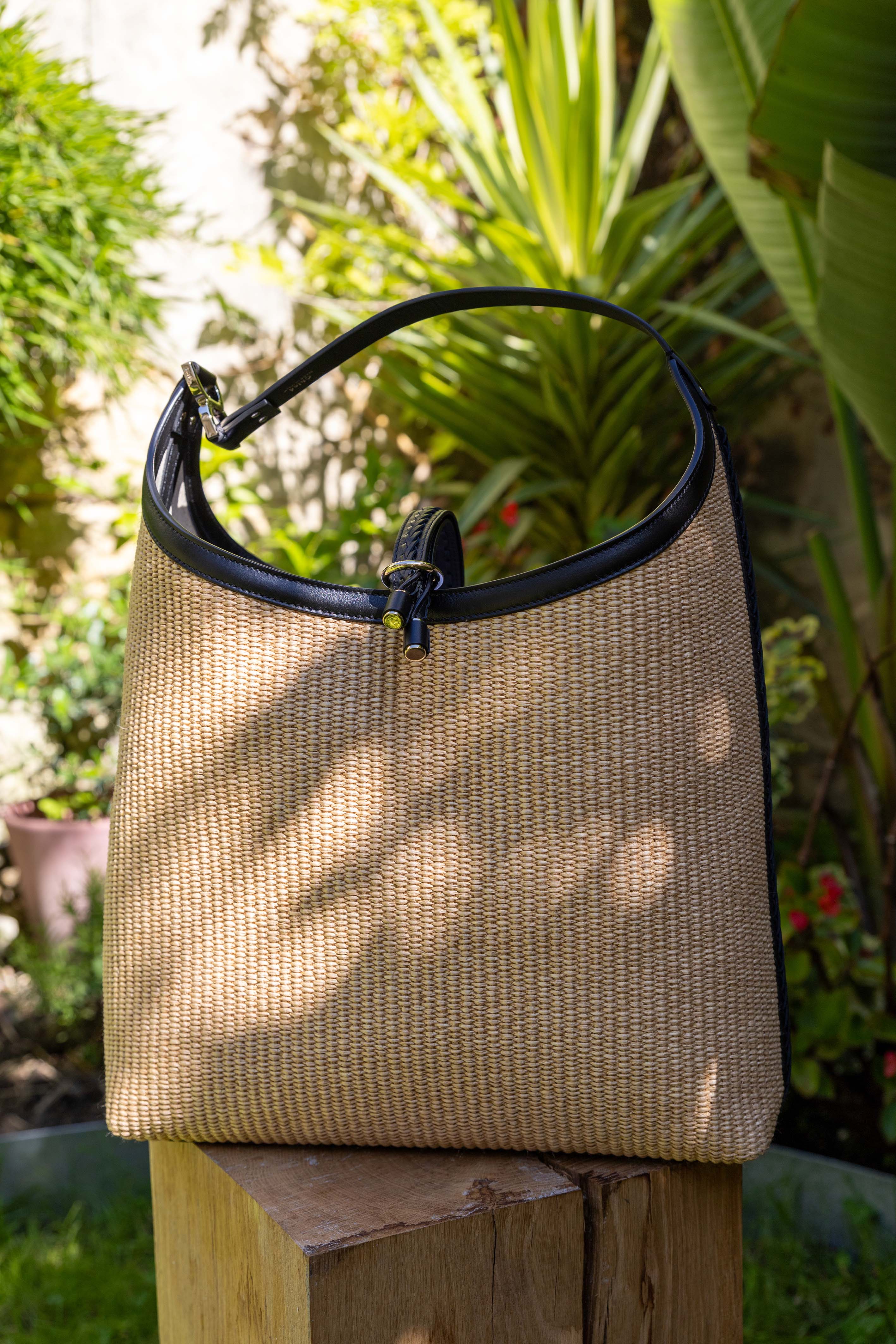 Dernière pièce présentée, ce sac en raffia et cuir grainé Woody de la maison Chloé. Confectionné en raffia soigneusement tissé et aux liserés de cuir , ce sac est un véritable chef-d’œuvre artisanal. Ses finitions raffinées témoignent du savoir-faire exceptionnel de la Maison Chloé. Spacieux et pratique, comprenant une poche de rangement intérieure, ce sac est parfait pour vous accompagner.