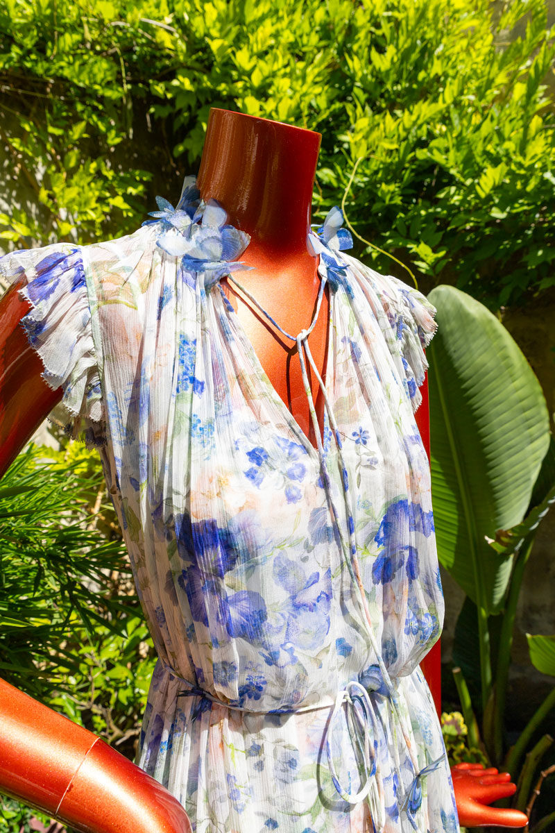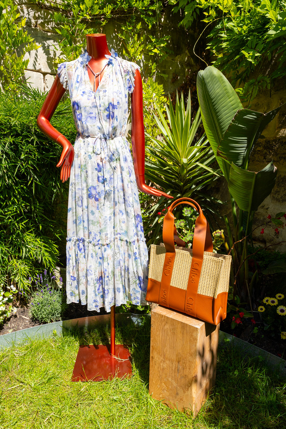 Pour cette première série de photos, découvrez l’élégance et la légèreté de cette longue robe d’été signée Alberta Ferretti. Cette robe à la coupe fluide et aérienne est parfaite pour les journées ensoleillées et les soirées estivales. Confectionnée avec le plus grand soin, dans un pastel subtil, elle allie confort et sophistication. Elle se combine parfaitement avec ce cabas Lanvin, également disponible à la boutique.